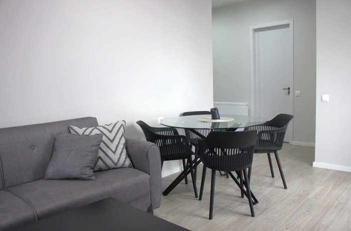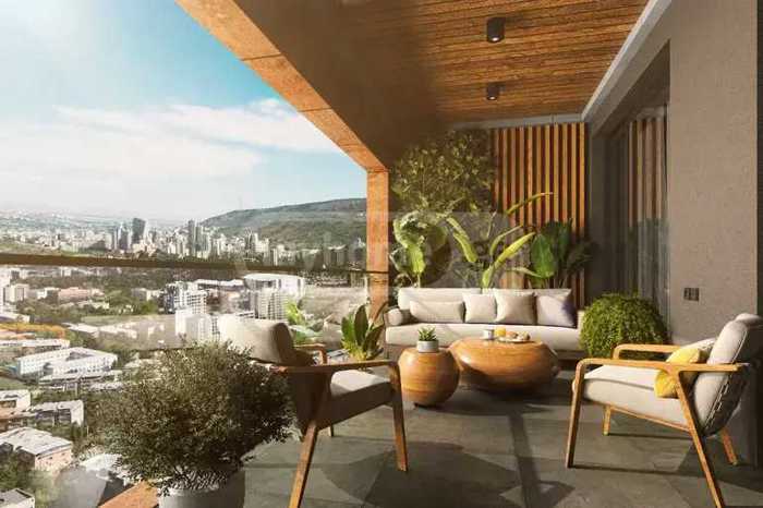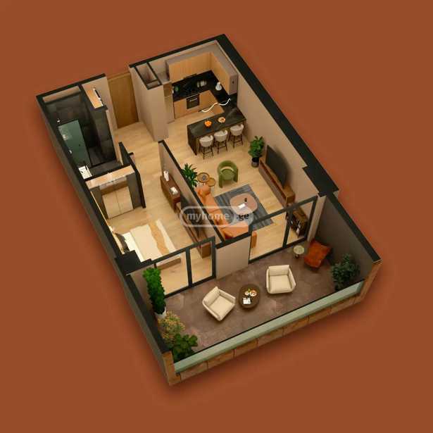 იყიდება ბინა ახალ აშენებულ კორპუსში, არასტანდარტული პროექტით. ბინის საერთო ფართობი შეადგენს 76 კვ.მ-ს და მდებარეობს მერვე სართულზე. ბინაში არის სამი ოთახი, ორი საძინებელი და სტუდიო ტიპის სამზარეულო. ბინას აქვს ორი აივანი, რაც უზრუნველყოფს ბუნებრივი სინათლისა და ჰაერის კარგ ცირკულაციას. მშვიდი გარემო და თანამედროვე დიზაინი ქმნის მყუდრო და კომფორტულ საცხოვრებელ სივრცეს.