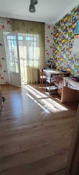 იყიდება სამ ოთახიანი ბინა ორი საძინებლით (ერთი დიდი საძინებელი არის გაყოფილი გიფსოკარდონით ორ პატარა საძინებლად, ორივეს აქვს ფანჯარა. ასევე სახლს აქვს სარდაფი 7 კვ.მ-ი