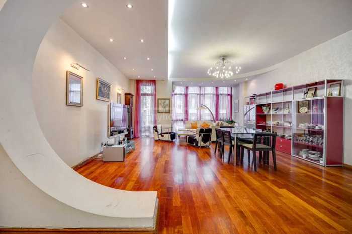 |იყიდება მრგვალ ბაღთან, დიზაინერული, მაღალჭერიანი, კუთხის გამჭოლი ბინა. ახალი რემონტით, უმაღლესი ხარისხის მასალებით, პრემიუმ კლასის ტექნიკით. ცენტრალური გათბობა, 2 კონდენციონერი, ხის პარკეტი. სამზარეულო არის ანტიკვარული ავეჯისა და „კასა ვერდეს“ მიერ დამზადებული მასიური მუხის ხის ავეჯის მიქსი. მათივე დამზადებულია ამავე მასალისგან ბიბლიოთეკის თაროებიც და აბაზანის ავეჯიც. ბინას აქვს სამი საძინებლი, 2 საძინებელს აქვს საკუთარი საგარდერობე, 1 საძინებელს დიდი ჩაშენებული კარადა. ბინაში დაქსილია ინტერნეტი და ტელევიზია ყველა ოთახში. 2 აივნით, 2 სველი წერტილით, სარდაფით, სადარბაზოში აქვს სათავსო, ეზო იკეტება შლაგბაუმით და არის პარკინგის ადგილი. დაცული სადარბაზო, 2 ლიფტი - სატვირთო და სამგზავრო.