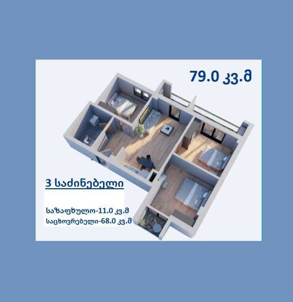 იყიდება მშენებარე 12-სართულიან კორპუსში გლდანში, ქერჩის ქუჩა N 6ა მიმდებარედ 3-ოთახიანი ბინა 79 კვ.მ მე-9 სართულზე. მშენებლობა დასრულდება 12 თვეში, ბინა ბარდება თეთრი კარკასის მდგომარეობით. გადახდის პირობები განიხილება გაყიდვების ოფისში