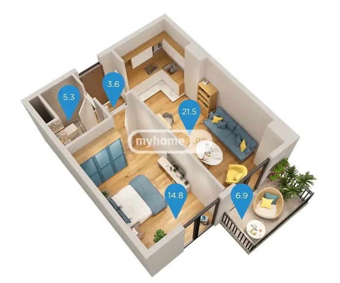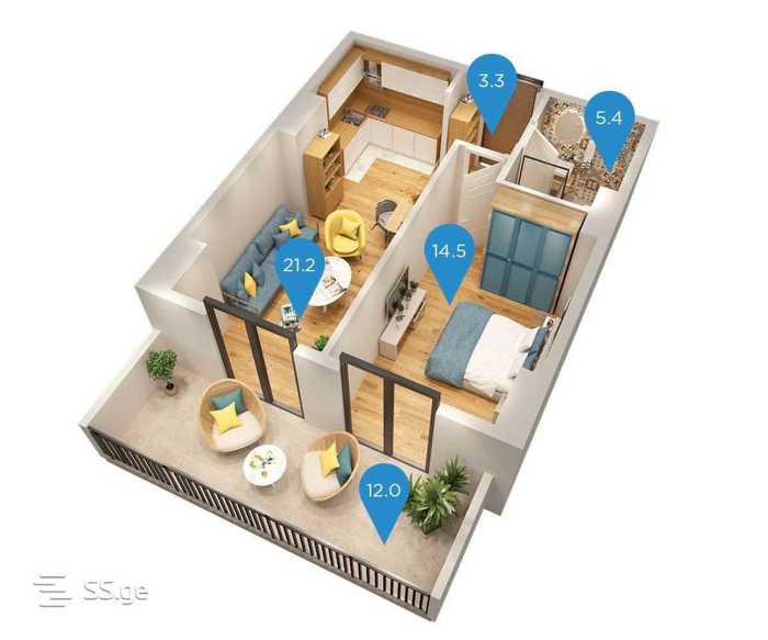 იყიდება 56.9 კვადრატი ბინა, არქის კიკვიძის პროექტის B ბლოკში. ბინას აქვს 1 საძინებელი, სახლი არის მწვანე კაკრკასის მდგომარეობაში. 26-სართულიანი პროექტი იდეალურ ადგილას, მეტროსადგურ „გოცირიძედან“ და „დიდუბიდან“ 5 წუთის სავალზე მდებარეობს. კომპლექსი გამოირჩევა 15 000 კვ.მ. გამწვანებული ეზოთი, რომელშიც დასასვენებელი სივრცეები, სპორტული და საბავშვო მოედნები განთავსდება.