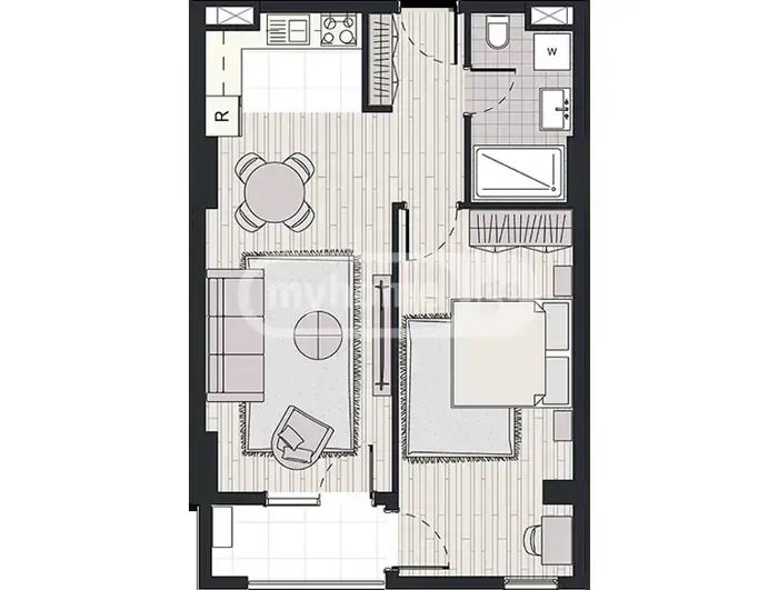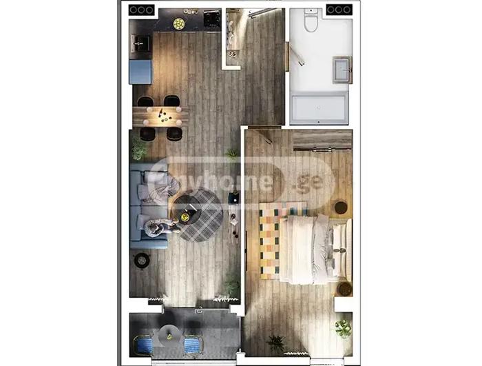 იყიდება ორ ოთახიანი ბინა კომფორტ კლასის მშენებარე პროექტში, რომელიც ბარდება 2027 წლის ბოლოს RiverFront Residence პროექტი მოიცავს: 2500 მ2 შიდა ეზოს, რომელშიც 1900 მ2 დაეთმობა გამწვანებას ორ დონიან დახურულ პარკინგს, ელექტრო დამტენებით საოფისე და კომერციულ ფართებს, სავაჭრო და კვების ობიექტებით მოსასვენებელ და ბავშვთა გასართობ სივრცეებს საერთო მოხმარების გამწვანებულ ღია ტერასას დაცვისა და დასუფთავების მომსახურებას.