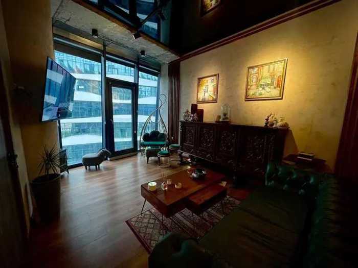 172 კვ.მ 3 საძინებელი 3 სველი წერტილი დიდი მისაღები იზოლირებული სამზარეულო ულამაზესი ხედები მტკვარზე ლობი, სპორტული დარბაზი, აუზი და სპა + ( 25% ფასდაკლება მესაკუთრისთვის ) მაღალტექნოლოგიური ინფრასტრუქტურა 24 საათიანი დაცვა და სასტუმროს მომსახურება შესაძლებელია მისი გამოყენება ლუქს ოფისად.
