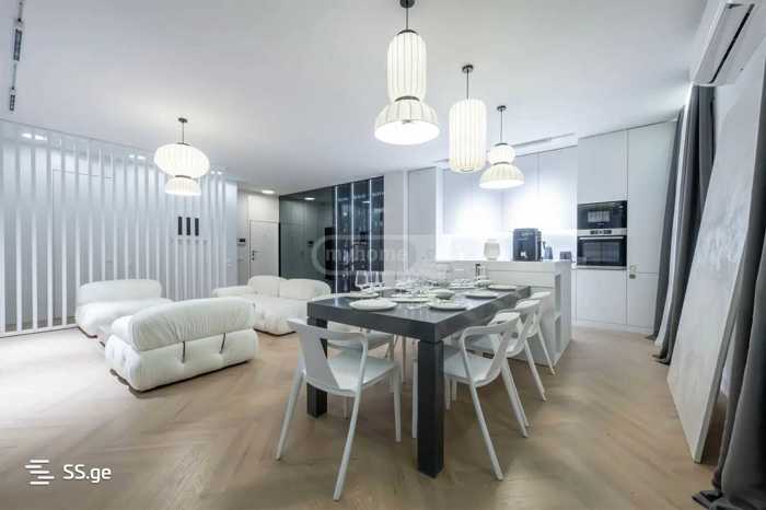 !!!მაქვს ვიდეო მასალაც!!! გთავაზობთ უნიკალურ ბინას Tbilisi Gardens-ში — პრემიუმ კლასის საცხოვრებელ სივრცეს თანამედროვე დიზაინით, უმაღლესი ხარისხის რემონტით და ქალაქის პანორამული ხედებით. ბინა იდეალური არჩევანია მათთვის, ვინც კომფორტს, ეკოლოგიურად სუფთა გარემოსა და დახვეწილ სტილს აფასებს. Tbilisi Gardens-ის უპირატესობებს შორის აღსანიშნავია ეკოლოგიურად სუფთა და პრესტიჟული ლოკაცია, რომელიც იდეალურია საცხოვრებლად. შენობა აშენებულია საერთაშორისო უსაფრთხოების ნორმებით და სთავაზობს პანორამულ ხედებს მთებსა და ქალაქზე. კომპლექსი მოიცავს 21,000 მ² გამწვანებულ ზონებს, ცენტრალურ პარკსა და თანამედროვე ინფრასტრუქტურულ ობიექტებს. აქვე განთავსებულია 25-მეტრიანი საცურაო აუზი, ფიტნეს ცენტრი და ბავშვებისთვის სათამაშო ზონა. უსაფრთხოებაზე ზრუნავს 24/7 დაცვა და ვიდეომეთვალყურეობის სისტემა. ბინის უპირატესობები მოიცავს პრემიუმ რემონტს, რომელიც შესრულებულია უმაღლესი ხარისხის მასალებით და თანამედროვე დიზაინით, სრულად შესაბამისი საერთაშორისო სტანდარტების. ინტერიერი აღჭურვილია Motif და Naterial-ის პრემიუმ ავეჯით, იტალიური Flos-ის ჭაღებით და Legrand-ის თანამედროვე ელექტრო სისტემებით. Jonathan Adler-ის ელეგანტური დეკორი ინტერიერს განსაკუთრებულ დახვეწილობას სძენს. ბინა სრულად აღჭურვილია Bosch-ის ტექნიკით, რაც მოიცავს კონდენციონერებს, მაცივარს, ღუმელებს, მიკროტალღურ ღუმელს, გაზქურას, სარეცხ და საშრობ მანქანებს, გამწოვსა და ღვინის მაცივარს. სამზარეულო მოწყობილია პროფესიონალურად და შედგება Zwilling და Alessi-ს სამზარეულოს ინვენტარისგან, ასევე Delonghi-ის ყავის აპარატისგან. სასიცოცხლო კომფორტისთვის ბინაში დამონტაჟებულია Harman Kardon-ის აუდიო სისტემა, რომელიც უზრუნველყოფს მაღალხარისხიან მუსიკალურ გამოცდილებას, ხოლო ინტერიერის ნაწილი ასევე წარმოადგენს პრემიალური სასმელების მინი კოლექციას.