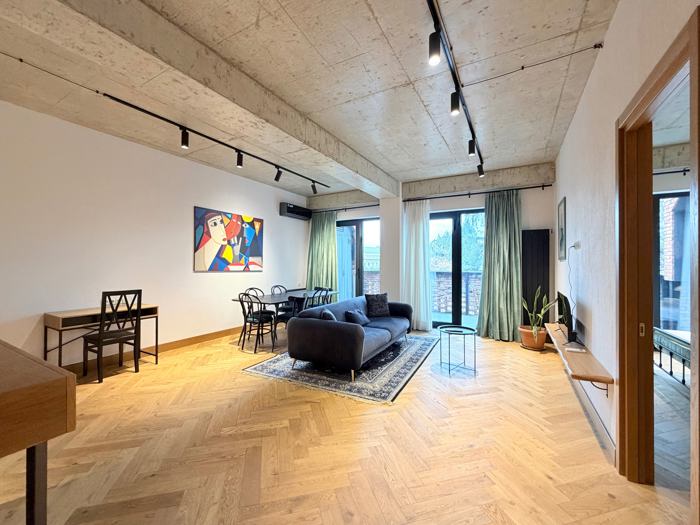 იყიდება 2 ოთახიანი ბინა ახალი რემონტით ავლაბარში, ირბახის ქუჩაზე, მრავალფუნქციურ საცხოვრებელ კომპლექს მოედანში, 59.3კვ.მ, 1(5) სართულზე, 15კვ.მ ვერანდით, კონდიციონერით, ავეჯითა და ტექნიკით ID 98694