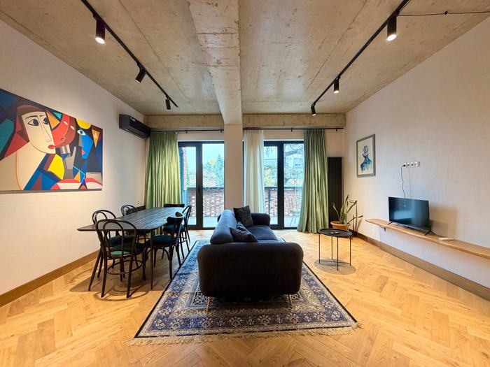 იყიდება ბინა მოედანის კომპლექსში,ბინა წარმატებით ქირავდება airbnb-ზე და აქვს სტაბილური შემოსავალი. • ფართი: 80.7 კვ.მ. • გეგმარება: 1 საძინებელი, 1 სველი წერტილი, ფართო მისაღები სივრცე და სამზარეულო ერთად • დამატებითი მახასიათებლები: დიდი აივანი სათავსოებით, ქალაქის ისტორიული ნაწილის შთამბეჭდავი ხედით მთაწმინდაზე • მდგომარეობა: ახალი გარემონტებული მაღალი ხარისხის მასალებით – ხის იატაკი, კედლების დეკორაციული დამუშავება და ღებვა, მაღალი ხარისხის ნიდერლანდების ავეჯი შეძენილი myhome - ში, პრემიუმ ხარისხის Hansgrohe-ს სანტექნიკა და ხარისხიანი მასალები მთელს ბინაში. ჩაშენებული ავეჯი არის კაკლის ხის სპეციალური შეკვეთით.