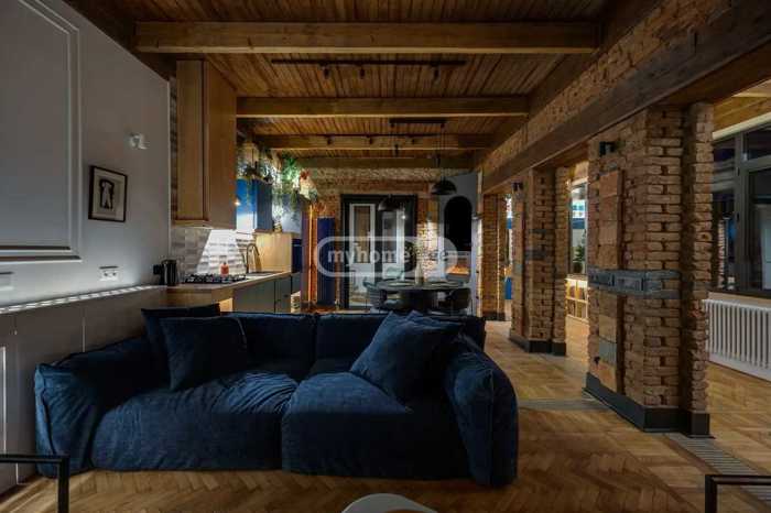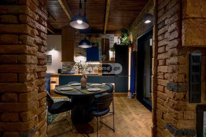 იყიდება დუპლექსის ტიპის 3 ოთახიანი მაღალჭერიანი ბინა ვერაზე, გ. ახვლედიანის ქუჩაზე. ძველი აშენებული შენობის 3-4/4 სართულზე. საერთო ფართია 110 მ2 და მოიცავს სტუდიოს ტიპის მისაღებ ოთახს და სამზარეულოს, 2 საძინებელს, 2 სველ წერტილს და 1 დახურული ტიპის აივანს. პირველ სართულზე ჭერის სიმაღლე 3.70მ. რემონტისას გამოყენებულია უმაღლესი ხარისხის მასალები. იყიდება ავეჯით და ტექნიკით.