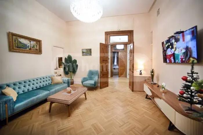 იყიდება ახალ გარემონტებული გამჭოლი, ნათელი და მყუდრო ბინა ქალაქის ცენტრში,ტურისტებისთვის მიმზიდველ და ყველაზე მოტხოვნად ადგილას. რუსთაველის მეტროდან 100 მეტრში, სტამბასთან ახლოს. ბინა არის ახალი ევრორემონტით, მაღალი ჭერით. 5 საძინებელი (მათ შორის 2 მასტერ ბედრუმი), 4 სველი წერტილი, 6 კონდეციონერი, 1 მოქმედი ბუხარი. ბინაში არის მაღალი ხარისხის ევროპული ავეჯი და ბელგიური ჭაღები, ხუთივე საძინებელში King Size-ის საწოლები, კონდეციონერები ყველა ოთახში, ცენტრალური გათბობა, ყველა ტიპის საყოფაცხოვრებო ტექნიკა, მათ შორის ჭურჭლის სარეცხი მანქანა. მანქანის პარკინგი ეზოში. ყოველთვიური ქირის გარდა, ბინას აქვს დამატებითი შემოსავალი - თვეში 600 ლარი, სარეკლამო ბანერისთვის ადგილის გაქირავებისგან.
