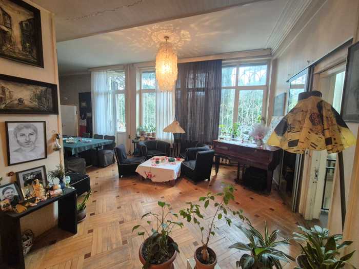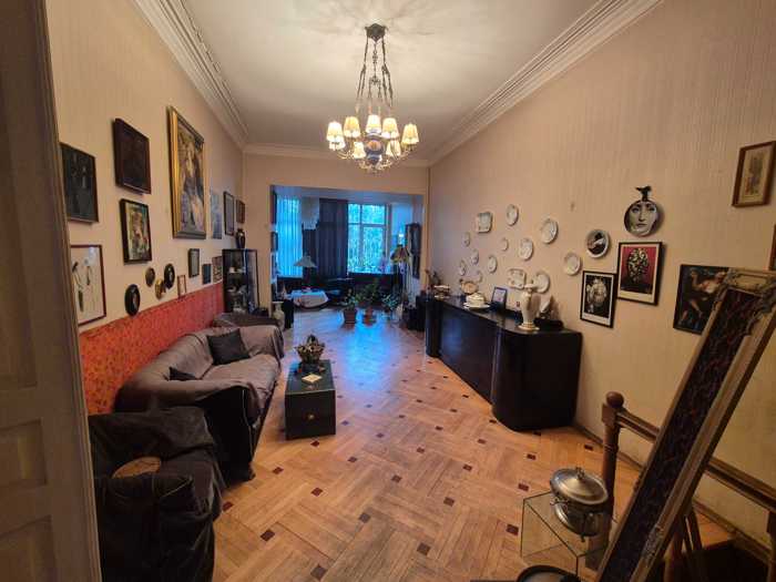 იყიდება ძველი აშენებული შენობა სპეც პროექტით . თბილისის ცენტრში ფილარმონიასთან მაღალ პირველ სართულზე. ბინა არის დიდი 313 კვ და გამჭოლი ( არაოფიციალურად უფრო მეტი კვადრატულობით ) ბინის ფანჯრები გამოდის როგორც ქუჩის მხრიდან ასევე ეზოს მხრიდან ბინა არის გაკეთებული 2 სართულად 1 სართულზე ძირითადი საცხოვრებელი ფართი და კიბით ჩასასვლელი ნახევარ სარდაფული სართული სადაც გაკეთებულია ბუხარი. არის ძველი ქვევრები შემონახული. არის ხელოვნური ჩანჩქერი გაკეთებული. ფართი იძლევა იდეების განხორციელების საშუალებას. ბინაში არის მაღალი ჭერი. ეზოს მხრიდან მოჩანს ეკლესია და ემიჯნება ვერის ბაღიც. მოყვება ავტო ფარეხი 2 დიდი მანქანის ადგილით. ადგილი საინვესტიციოდ იდელაურია და ფასზეც დალაპარაკება შესაძლებელია.