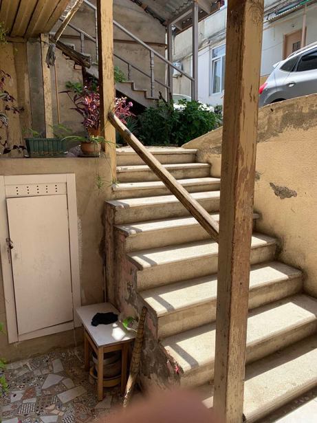 იტალიურ ეზოში, ოპერის უკან, დაბალ პირველ სართულზე 50 მ2 ბინა. 9 მ2 აივანი გადადის სანაპიროზე და უყურებს მტკვარს. ორი ოთახი, ლოჯი, სამზარეულო, ტუალეტი, აივანი. ბინას გააჩნია დამატებით 5 მ2 საკუჭნაო რომელიც ესაზღვრება ტუალეტს. სახლი აშენებულია ძველი ქართული აგურით და კედლების სისქეა (ერთი მეტრი). ბინა სარემონტოა.