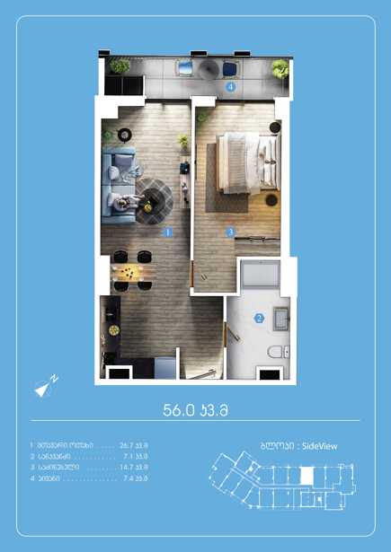იყიდება ორ ოთახიანი ბინა კომფორტ კლასის მშენებარე პროექტში, რომელიც ბარდება 2027 წლის ბოლოს RiverFront Residence პროექტი მოიცავს: 2500 მ2 შიდა ეზოს, რომელშიც 1900 მ2 დაეთმობა გამწვანებას ორ დონიან დახურულ პარკინგს, ელექტრო დამტენებით საოფისე და კომერციულ ფართებს, სავაჭრო და კვების ობიექტებით მოსასვენებელ და ბავშვთა გასართობ სივრცეებს საერთო მოხმარების გამწვანებულ ღია ტერასას დაცვისა და დასუფთავების მომსახურებას.