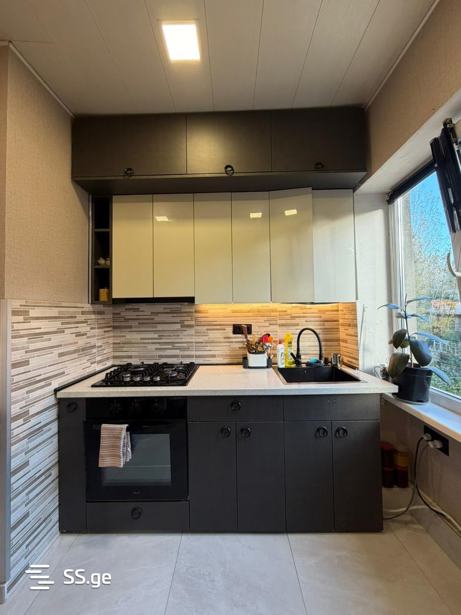 იყიდება 1 ოთახიანი ბინა მიშენებით 40 კვ/მ, ახალი რემონტით, მეტალო-პლატსმასის ფანჯრებით, კონდიციონერით, სამზარეულო თავისი ტექნიკით, სავარძლებითა და ჩაშენებული სათავსოებით (შკაფებით), +10კვ/მ სარდაფით. გარაჟი 28 კვ/მ - თანხის დამატების შემთხვევაში.