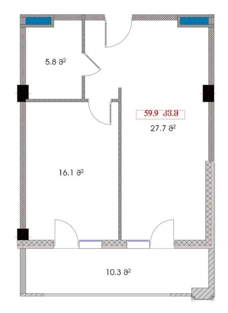 იყიდება სტუდიოს ტიპის ბინა, „Devart”-ის პროექტის დასრულებულ ბლოკში, თეთრი კარკასის მდგომარეობით. ბინა მდებარეობს პირველ სართულზე. საერთო ფართი 59.9 კვ.მ. (აივნის ჩათვლით).