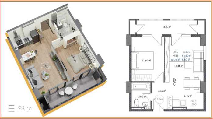 იყიდება ფანტასტიური ხედებით 2 ოთახიანი ბინა 52 მ2 ფართობით. ჭერის სიმაღლეა 3 მეტრი. ბინას აქვს კლასიკური განლაგება ღია ფართო აივნებით და ფანჯრების პანორამული მინებით, რაც უზრუნველყოფს შენობის მაღალ ინსოლაციას.