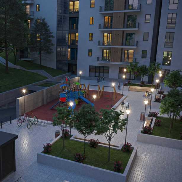 მ2 საცხოვრებელ კომპლექსში იყიდება ბინა ხედით ქალაქზე. კომპლექსში უკვე მიმდინარეობს ეზოს მოპირკეთება.