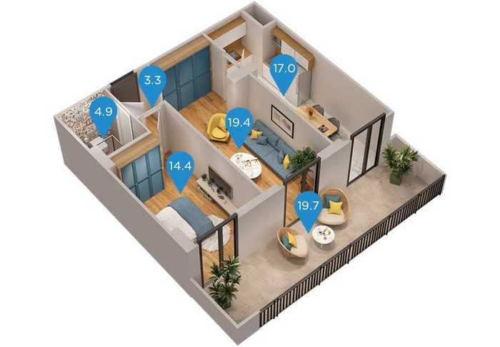 საერთო ფართი - 79.8 კვ.მ. საცხოვრებელი ფართი - 57.9 კვ.მ. საზაფხულო ფართი - 21.9 კვ.მ. A ბლოკი დეტალური ინფორმაციისთვის დამიკავშირდით