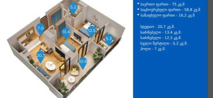 იყიდება კეთილმოწყობილი ბინა გურამიშვილის გამზირზე ახალაშენებულ კორპუსში 3-ოთახიანი, ნათელი ბინა, საუკეთესო და მყუდრო ლოკაციაზე. ბინა მოიცავს 2 საძინებელს, აღჭურვილია ცენტრალური გათბობით ასევე იატაკ ქვეშა გათბობით, იყიდება სრული ავეჯითა და ტექნიკით. ბინა ამჟამად გაქირავებულია და მოაქვს სტაბილური შემოსავალი – 600 აშშ დოლარი თვეში,