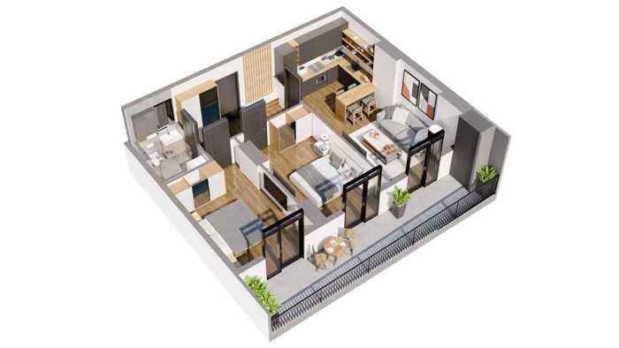 იყიდება ბინა ახალ აშენებულ, არასტანდარტულ პროექტში. ბინა მდებარეობს 8-სართულიანი კორპუსის მე-3 სართულზე და მისი საერთო ფართობი შეადგენს 70 კვ.მ-ს. ბინაში განთავსებულია 3 ოთახი, მათ შორის 2 საძინებელი, რაც უზრუნველყოფს კომფორტულ და ფუნქციურ განლაგებას. ბინას აქვს ორი აივანი, რაც დამატებით სივრცესა და სინათლეს ქმნის. ახალი გარემო და თანამედროვე სტანდარტები იდეალურ პირობებს ქმნის მშვიდი და სასიამოვნო ცხოვრებისათვის. ბინა არ არის ბოლო სართულზე, რაც უზრუნველყოფს დამატებით სიმშვიდესა და უსაფრთხოებას.