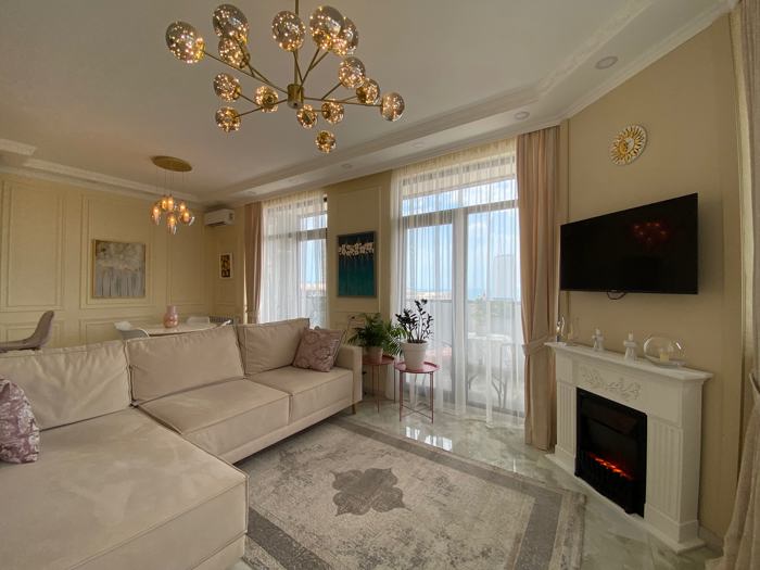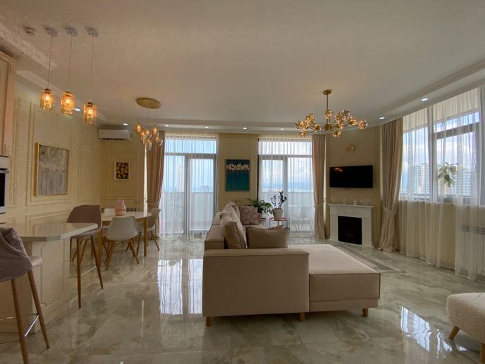 დიზაინერული რემონტი, პრემიუმ ხარისხი. დამატებითი ხმაურისა და ჰიდროიზოლაცია. ზღვისა და მთების პანორამული ხედი. ლამაზი, ნათელი ბინა. ძვირადღირებული, ელეგანტური ავეჯი. სამზარეულო ჩაშენებული ტექნიკით. ჭურჭლის სარეცხი მანქანა, ღუმელი, ელექტრო და გაზის ქურა, მაცივარი. კონდიციონერები. გათბობა - გაზქურა. აბაზანა. სარეცხი მანქანა. დიდი აივანი. ბიზნეს კლასის კომპლექსი Intourist Residence. დაცვა. პარკინგი. კარგი მდებარეობა: ზღვიდან 400 მეტრში, გმირთა ხეივნის, შადრევნების შოუს, ბაღში მდებარე სავაჭრო ცენტრის, Carrefour-ის, McDonald's-ის, Euro-2000 სკოლის, Lego-City-ის საბავშვო ბაღის, მაღაზიების, რესტორნების მახლობლად.