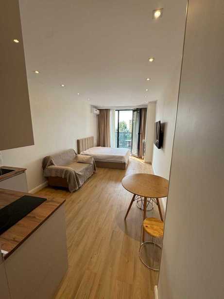 იყიდება სტუდიოს ტიპის აპარტამენტი NEXT WHITE-ში, 32,5 კვ.მ მე-14 სართულზე, შავი კარკასის მდგომარეობით, ზღვის პანორამული ხედით. ფასი 52500$