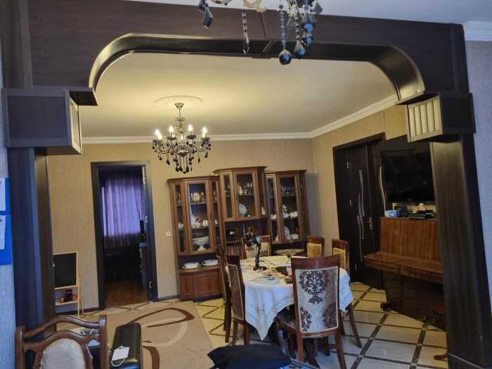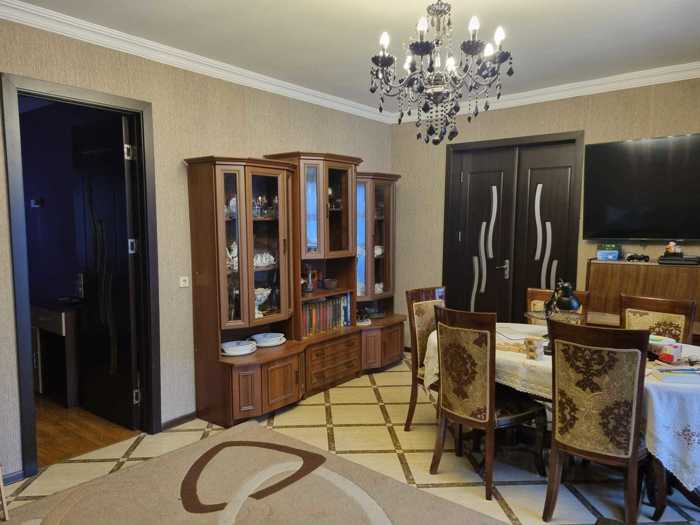 ბინა არის ჩეხური (ყავლაშვილის) პროექტი. ძალიან კარგ მდგომარეობაში, 2 სველი წერტილი, დიდი სამზარეულო, დიდი ლოჯი და დიდი ზალა, ზალა და ლოჯი გაერთიანებულია. არის 2 საძინებელი (15-15 კვ/მ) და მესამე პატარა საძინებელი (10 კვ/მ). ელექტრო გაყვანილობა დაერთებულია UPS-ზე. რკინის კარი და გისოსი. ავეჯი რჩება სრულად. აქვს სარდაფი და საშრობი სივრცე ე.წ. სუშილკა. კორპუსს აქვს წინა და უკანა ეზოები მოსასვენებელი და ეზოს საპარკინგე სივრცეებით.