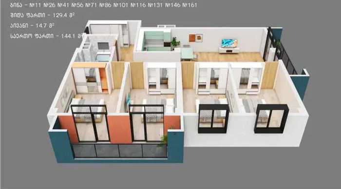 იყიდება 5 ოთახიანი ბინა დასრულებულ კორპუსში 12/5 სართულზე. ლომოურის ქუჩაზე რუსთავი მოლის გვერდზე 144 კვადრატი