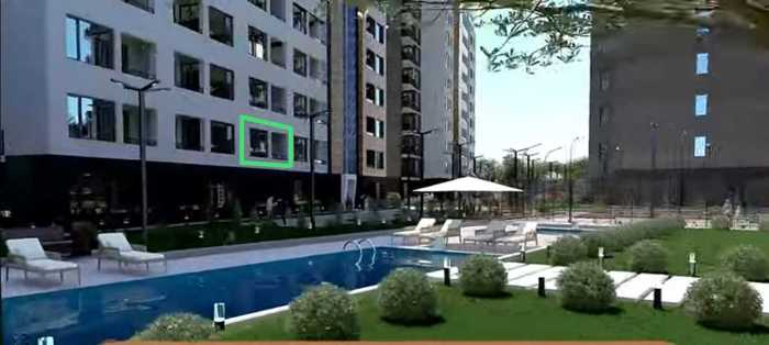 78 კვ.მ., 2 საძინებლით, საგარდერობით, უცხოვრებელი, ახალი რემონტით, ქალაქისა და ეზოს ხედებით. კომპლექსი: დახურული აუზი, გამწვანებული ეზო ტბით, სპორტული მოედნები. მდებარეობა: ყველა საჭირო ინფრასტრუქტურა ახლოს – მაღაზიები, სკოლები, ტრანსპორტი.