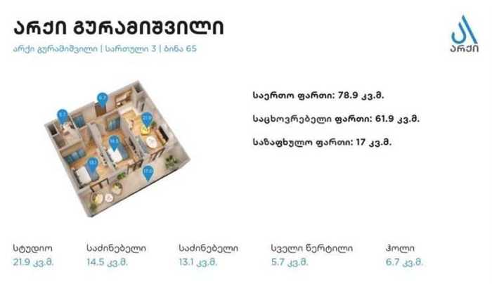 ბინა არის Hausart-ის აშენებული, გარემონტებული, მოწყობილია სრულად ავეჯით და ტექნიკით, მიმდინარე ეტაპზე გაქირავებულია ქართველ წყვილზე.