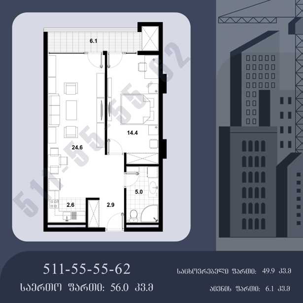 მშენებარე კორპუსში პატარა ბინა ძალიან იაფად. COMFORT BY ORBI