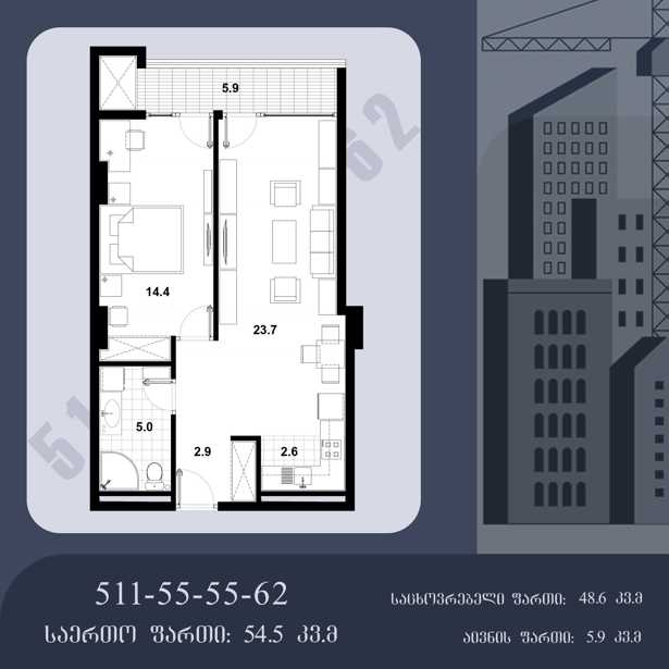 იყიდება ბინა 12 სართულიან მშენებარე პროექტში, N132 საჯარო სკოლასთან. მშენებლობა დასრულდება 2026 წლის დეკემბერში. გთავაზობთ სხვა კვადრატულობის ფართებსაც (იხილეთ მოცემული გეგმა) კონდიცია - მწვანე კარკასი.