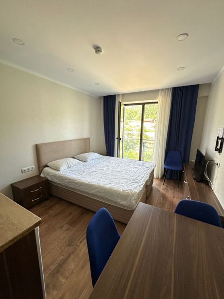 ქირავდება 1 ოთახიანი ახალგარემონტებული მყუდრო ბინა ბაკურიანში განთავსდება 4 ადამიანი (საწოლი და გასაშლელი დივანი) ბინა მდებარეობს ტყის პირას აქვს დიდი აივანი ულამაზესი ხედებით ტყეზე და კეთილმოწყობილი ეზო. ბინაში დაგხვდებათ: ცენტრალური გათბობა Wifi ტელევიზორი ჭურჭელი ელექტრო ჩაიდანი გაზქურა სარეცხი მანქანა მაცივარი ელექტრო ღუმელი სასტუმროს აქვს საპარკინგე ზონა და დიდი კეთილმოწყობილი ეზო.