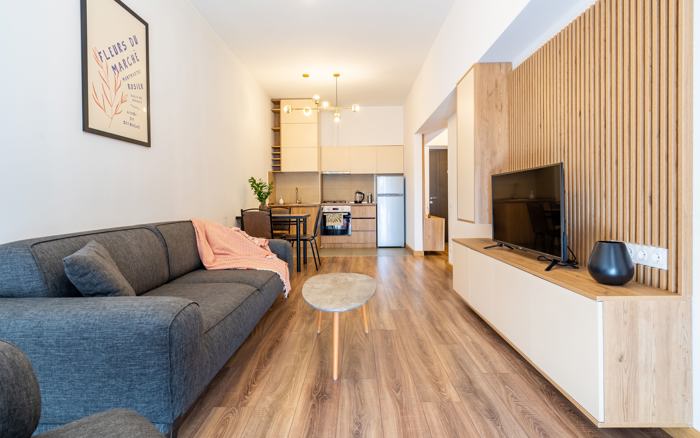 ერთ საძინებლიანი ბინა საბურთალოე ახალი რემონტით ბინაში დაგხვდებათ ერთჯერადი ნივთები
