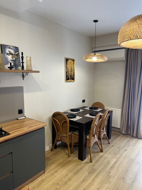 ქირავდება დღიურად მოწესრიგებული და მყუდრო ბინა, სრული კომფორტით! ბინა აღჭურვილია ყველაფრით რაც საჭიროა დაუვიწყარი დროის გასატარებლად. პირობები: მდებარეობა: თბილისი, ნაძალადევი, გიორგი ჭყონდიდელის 34, m² Development. ბინა ზუსტად იმ კონდენციაშია რაც ჩანს ფოტოებზე; უფასო Wi-Fi; სუფთა თეთრეული, პირსახოცები, პირადი გამოყენების და ჰიგიენის ნივთები (ჩუსტი, თხევადი საპონი, კბილის ჯაგრისი, შამპუნი, საპონი); სამზარეულოში არის ყველა საჭირო ატრიბუტი, ჭურჭელი, მაცივარი, ელექტრო ჩაიდანი, ტოსტერი და სხვა, დაგხვდებათ ყავა ჩაი შაქარი; კონდიციონერი და გათბობა; თვითშესვლა; Smart ტელევიზორი +Youtybe, კონფიდენციალურობა 100%; მანქანის საპარკინგე ადგილი უფასოა; საფეხბურთო საკალათბურთე სტადიონი და ბავშვთა გასართობი სკვერი; დაცული სადარბაზო და 24/7 კამერები; ბინაში მოწევა აკრძალულია, ნებადართულია, მხოლოდ აივანზე.