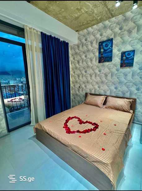 ქირავდება სასტუმროს ტიპის აპარტი ახალ აშენებულ "რუსთაველი" მოლის შენობაში, ყველანაირო ტექნიკით და ავეჯით, ჯაკუზით. არის სუფთა თეთრეული, პირსახოცები, ჩუსტები, კბილის პასტა ჯაგრისით., სუფთა ხალათები . ქირავდება როგორც დღიურად ასევე საათობრივად. ფასი დროის მიხედვით .
