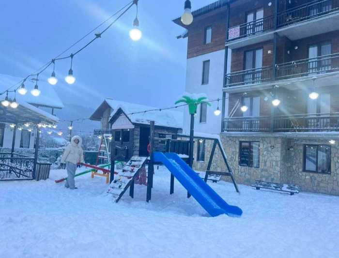კოხტა/მიტარბის ასასვლელთან. ტერასა 8 შენობაში ქირავდება ლუქსის ტიპის 2-ოთახიანი, 4(5) ბინა ეზოს მხარეს აივნით. კორპუსს აქვს ცალკე იზოლირებული ეზო გასართობი-სათამაშო ინვენტარით, მაგიდა-სკამებით და ჰამაკებით. ნომერი უზრუნველყოფილია ცალკე საძინებელი ოთახით (ორადგილიანი საწოლით და კარადებით), გასაშლელი დივანით, დამატებით გასაშლელი ერთადგილიანი საწოლით (ლეჟანკით), ავეჯით, სამზარეულოს კუთხით, სარეცხი მანქანით, დიდი მაცივრით, ელექტრო ქურით, სამზარეულოსთვის აუცილებელი ჭურჭლით, ტელევიზორით (ფლეშკის შესაერთებლით), მაგთის ინტერნეტ/ტელევიზიით, ცხელი წყლით. კორპუსის პირველ სართულზე მდებარეობს მარკეტები სპარი და 2 ნაბიჯი, 100 მეტრში მაღაზია ნიკორა, მგზავრების რესტორანი, პარკინგი. ფასი 200 ლარი.