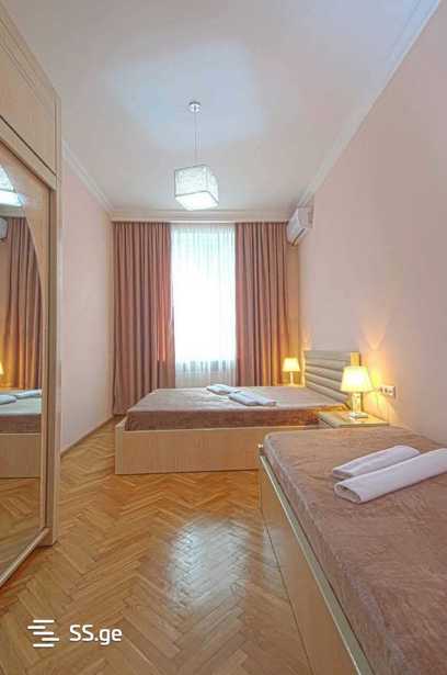 ქირავდება რუსთაველზე, ქაშუეთის ეკლესიასთან, ალექსანდრეს ბაღზე ხედით 4სართულიანი სახლის მე-2 სართულზე, 3 ოთახიანი 90კვ.მ ბინა. 2 საძინებლით, იზოლირებული სამზარეულოთი, 2 აივნით, ყველა ოთახი აღჭურვილია კონდენციონერით