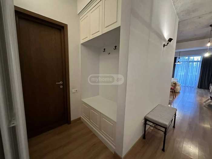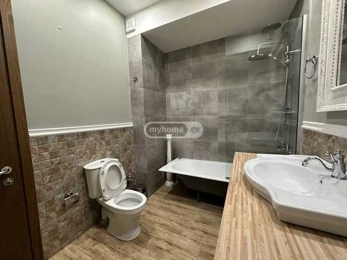 ბინა მდებარეობს მეექვსე სართულზე, ლიფტით. ფართობი არის 140 კვ.მ. შედგება ორი საძინებლით, დიდი მისაღები ოთახი ბუხრით, სამზარეულოთი, ორი სველი წერტილით და შუშაბანდით.