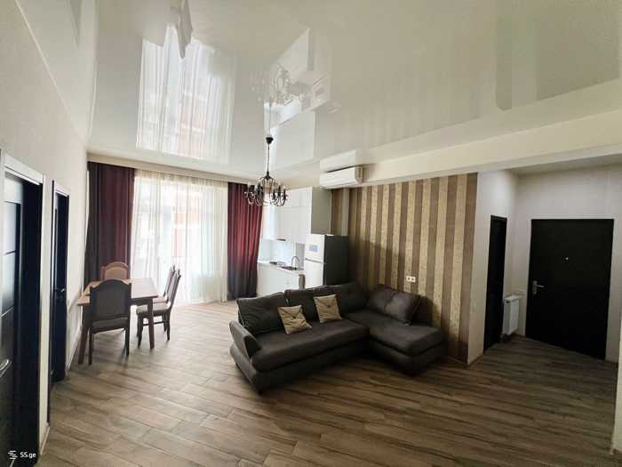 ქირავდება ახალი აშენებული, არასტანდარტული პროექტის ბინა 65 კვ.მ ფართობით. ბინა მდებარეობს 7-სართულიანი კორპუსის მეხუთე სართულზე და შედგება ორი ოთახისგან, რომელთაგან ერთი საძინებელია. ბინაში არ არის აივანი. განახლებული მდგომარეობა და თანამედროვე გარემო უზრუნველყოფს კომფორტულ და მყუდრო ცხოვრებას. იდეალურია მათთვის, ვინც აფასებს სიმშვიდესა და ახალ გარემოში ცხოვრებას. ბინა არ არის ბოლო სართულზე, რაც დამატებით სიმშვიდესა და უსაფრთხოებას უზრუნველყოფს.