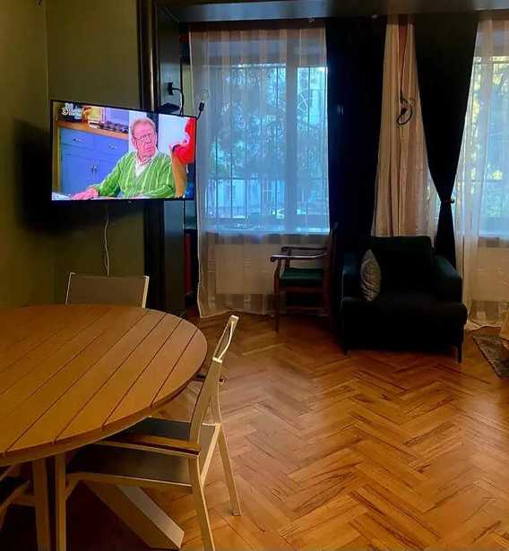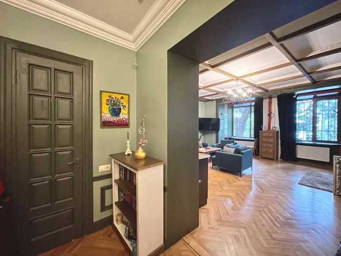 ბინა მდებარეობს პრესტიჟულ და წყნარ უბანში მრგვალ ბაღთან ახლოს. ბინა არის ნათელი და მყუდრო, მაღალი ჭერით და საუკეთესო ხედით ორივე აივნიდან.
