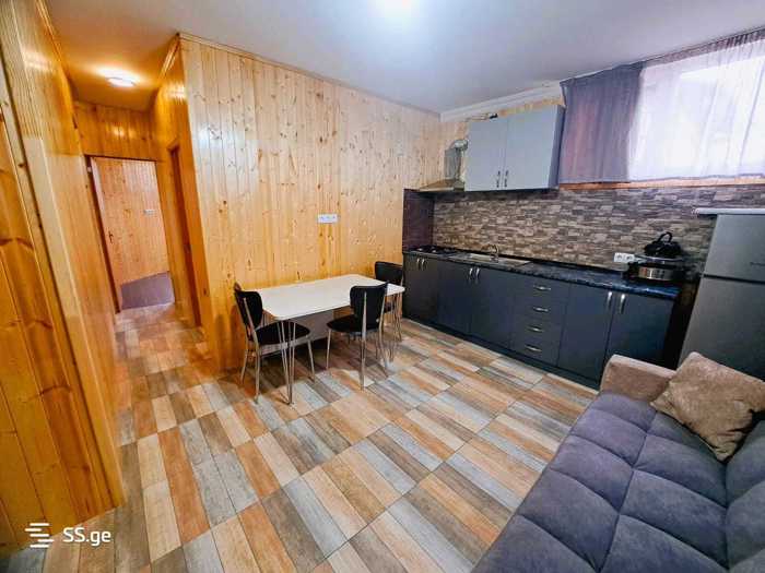 2 საძინებლიანი ბინა, ავეჯით და ტექნიკით კეთილმოწყობილი. კერძო დასახლებაში. 6 ბინიანი კორპუსის ქვედა სართული. გადის ნახევარსარდაფში, თუმცა არის ძალიან მყიდრო, მშრალი დათბილო ბინა.