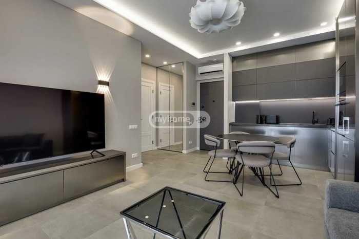 ქირავდება თბიკისი გარდენსში ორ ოთახიანი სტუდიოს ტიპის ბინა, დიდი ვერანდებით, ყველანაირი ტექნიკით აღჭურვილი, 2კონდენციონერი, 2 ტელევიზორი, 24 საათიანი დაცვა, აუზი, ფიტნესი, საუნა