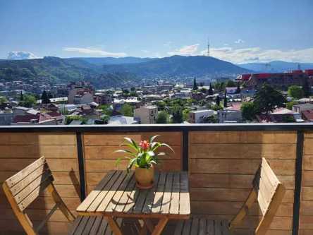 თელავის ქუჩა N 45 (სასტუმრო შერატონ მეტეხი-პალასთან) პირველი სადარბაზო, სართული 4. ფართი-45 კვ.მ. სტუდიოს ტიპის მისაღები; საძინებელი 1; სველი წერტილი1; აივნიდან იშლება მთაწმინდისა და ნარიყალას ხედები;