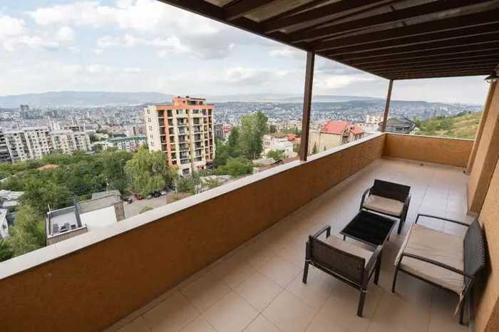 ბინა არის 3 ოთახიანი, ნათელი, მზიანი, ყველა მხრიდან სახლში შემოდის სინათლე. 2 დიდი საძინებლით, მათ შორის ერთი მასტერ ბედრუმით, 1 გარდერობით, ორივე საძინებელს აქვს დამოუკიდებელი აივანი, ხედით მთაწმინდაზე. სახლს ასევე აქვს დიდი ვერანდა, ქალაქის ხედით, რომელიც გადაჰყურებს შიდა გამწვანებულ ბაღს, აღსანიშნავია, რომ ბაღი არის დაცული, მასზე წვდომა აქვს მხოლოდ სადარბაზოს მაცხოვრებლებს. აღსანიშნავია, რომ მოცემული ბინა, სადარბაზოში არსებული ბინებისგან განსხვავდება არქიტექტურული განშლით. სახლის გვერდით არის მოწესრიგებული სტადიონი. გარშემო არსებული გამწვანების ფონზე, რაც იშვიათია დღეში, განსხვავებული ჰაერია. წინასწარ პირველი და ბოლო თვის გადახდით.