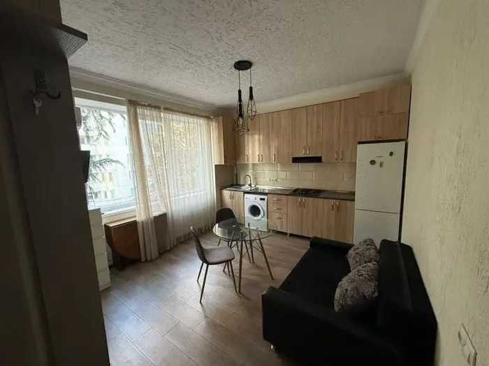 ქირავდება ნათელი გარემონტებული ერთოთახიანი სტუდიოს ტიპის ბინა, ტექნიკით და ავეჯით, მე-4 სართულზე. ახლოს კარფური, ორი ნაბიჯი. წინასწარ 2 თვის გადახდით!