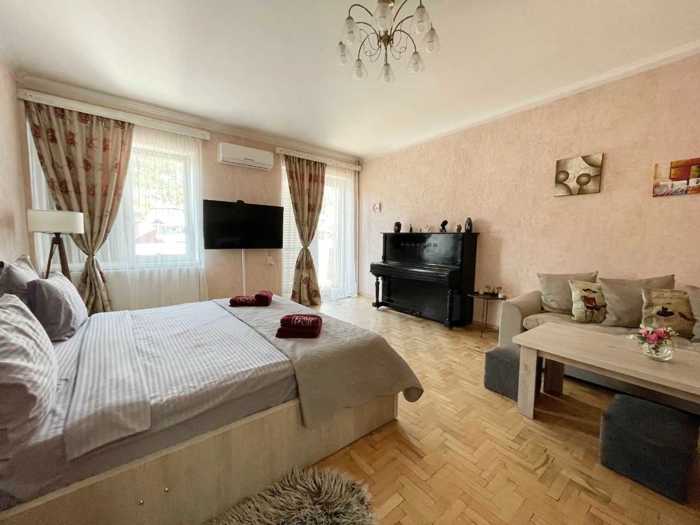 ბინა არის მაღალჭერიანი, ნათელი, მზიანი, სტუდიოს ტიპის, იზოლირებული საძინებლით. მდებარეობს არსენას ქუჩაზე, მთაწმინდაზე. ახლოს არის ოპერასთან, კონსერვატორიასთან, სასამართლოსთან და სამხატვრო აკადემიასთან. ფანჯრები გადმოდის ქუჩაზე, თუმცა საკმაოდ მშვიდი ქუჩაა. ხედი აქვს ფუნიკულორზე. ბინას აქვს 4 ფანჯარა, აქედან ერთი ეკუთვნის აბაზანას. ყველა საჭირო ავეჯით და ტექნიკით: ჭურჭლის სარეცხი მანქანა, სარეცხი მანქანა, მაცივარი, კონდენციონერი, ცენტრალური გათბობა.. ბინა ქირავდება 3 ნოემბრიდან.