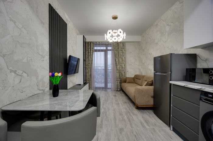 ქირავდება ბინა ახალაშენებულ, არასტანდარტულ პროექტში, 29-სართულიანი კორპუსის ბოლო სართულზე. ბინის საერთო ფართობი შეადგენს 60 კვ.მ-ს და მოიცავს 2 ოთახს, რომელთაგან ერთი საძინებელია. ბინა ახალი გარემონტებულია და გამოირჩევა თანამედროვე დიზაინითა და ნათელი სივრცით. მაღალი სართული უზრუნველყოფს ქალაქის ულამაზეს ხედებსა და სიმშვიდეს. იდეალურია მათთვის, ვინც აფასებს კომფორტს და თანამედროვე საცხოვრებელ გარემოს. ბინაში არ არის აივანი, რაც კიდევ უფრო მეტ სივრცეს ტოვებს ინტერიერში. აქ შეგიძლიათ იგრძნოთ სიმყუდროვე და განიტვირთოთ ყოველდღიური რუტინისგან.