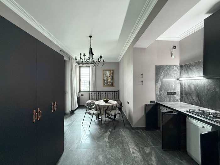 ბინა მდებარეობს პრესტიჟულ და წყნარ უბანში მრგვალ ბაღთან ახლოს. ბინა არის ნათელი და მყუდრო, მაღალი ჭერით და საუკეთესო ხედით ორივე აივნიდან.