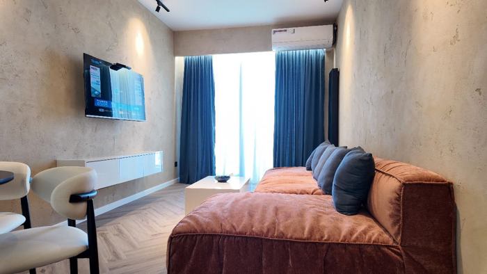 ბინა არის მყუდრო და თბილი ახალი რემონტით ახალი ავეჯით ტექნიკით. ბინას აქვს საკუთარი პარკინგი .