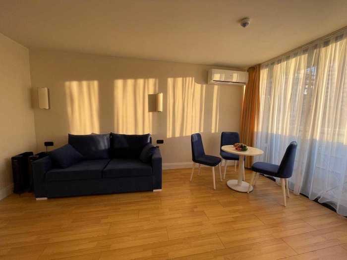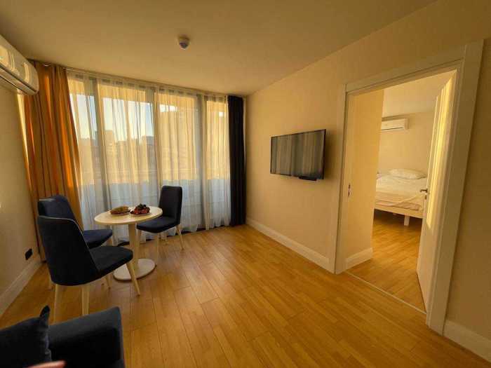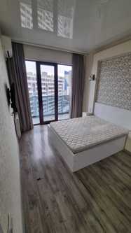 ქირავდება ახალაშენებული, არასტანდარტული პროექტის ბინა 55 კვ.მ ფართობით, მდებარეობს 15-სართულიანი კორპუსის მე-7 სართულზე. ბინაში არის ერთი საძინებელი და ორი ოთახი, რაც უზრუნველყოფს კომფორტულ და მყუდრო გარემოს. მისაღები ოთახი აღჭურვილია რბილი დივანით, საძინებელში განთავსებულია კომფორტული საწოლი. ბინას აქვს აივანი, ზღვის ხედით მაისის ჩათვლით ქირავდება. გადახდა პირველი და ბოლო თვის ერთად