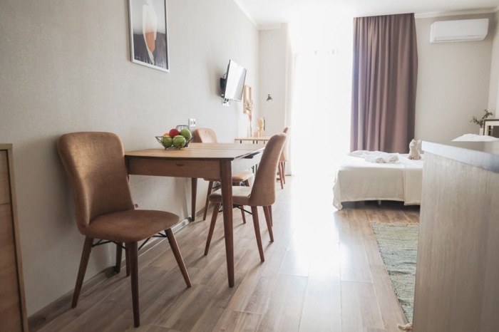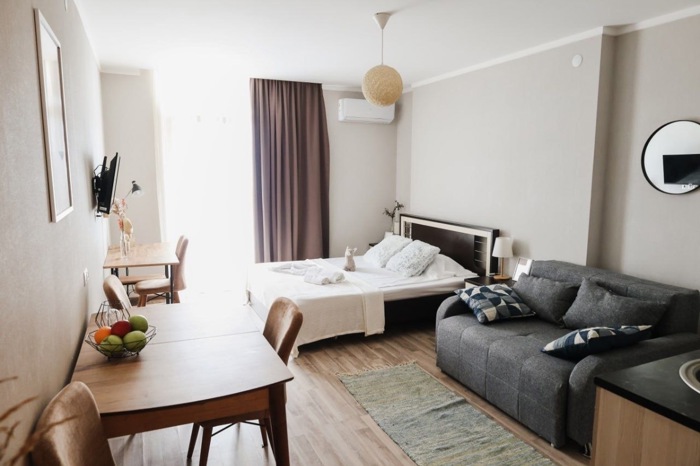 სტუდია 350$ წელიწადში, ზღვის ხედით. ძალიან კომფორტული, ნათელი ფერებით მქონდა სამუშაო მაგიდა და კომფორტული დივანი ზაფხულისთვის არ იქნება მომატება ჭამა